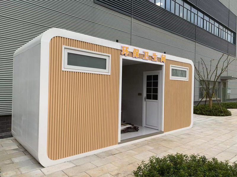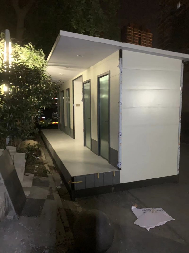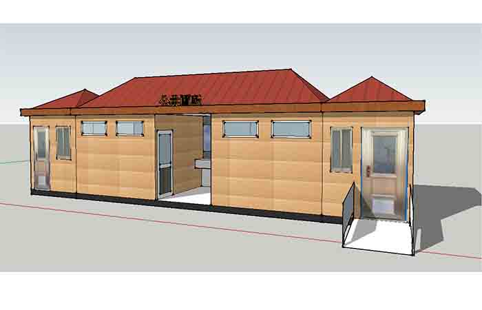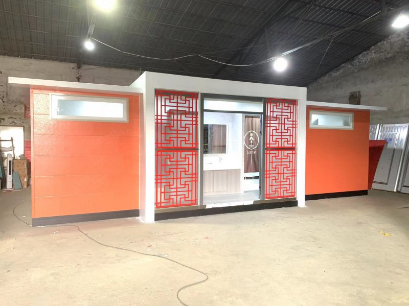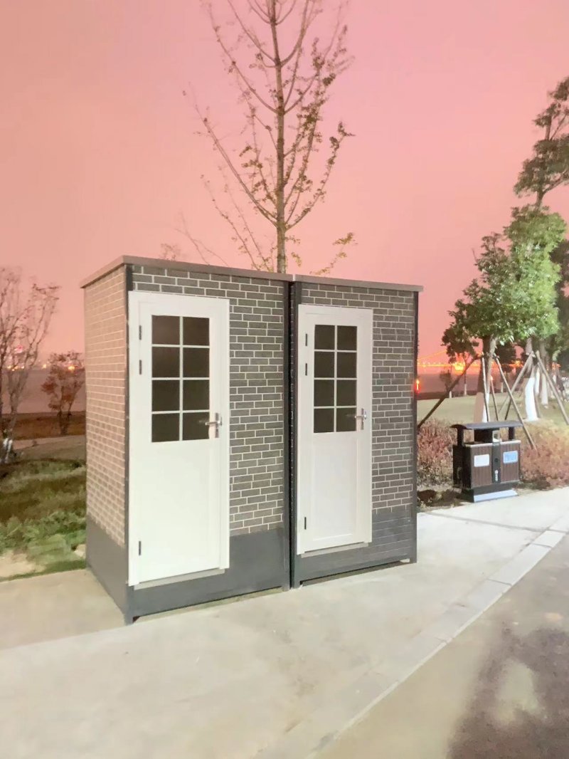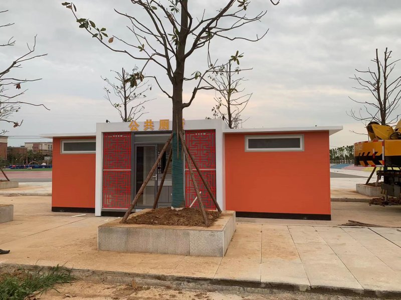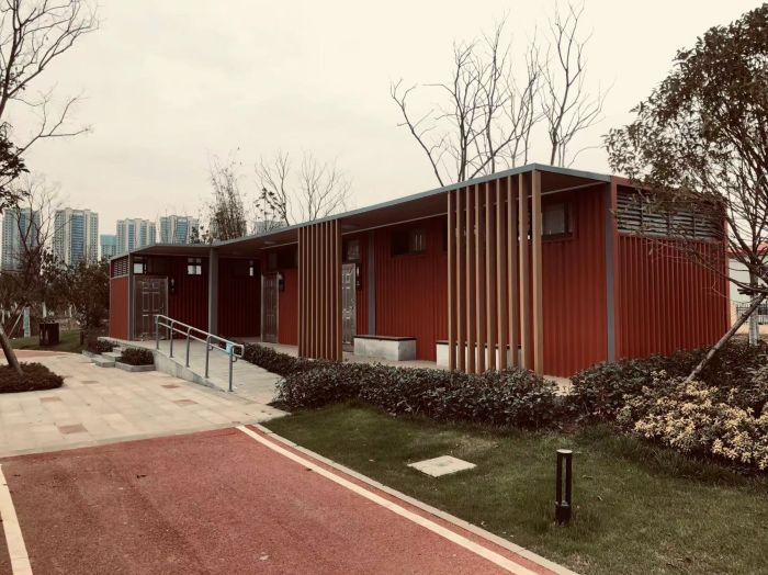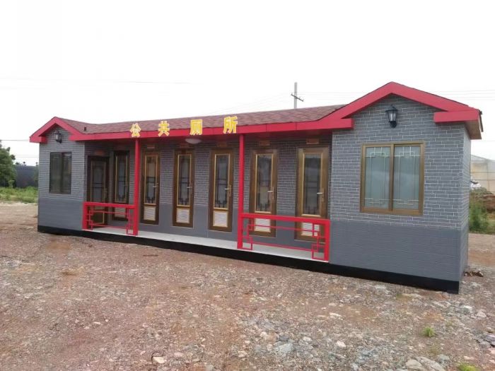 MORE拼裝廁所;在廠里做好各個廁所部件,再到現(xiàn)場組裝在一齊,適合不易運輸?shù)拇笮蛶?。這座箱式廁所,女廁5個蹲位內配工具間,男廁2個蹲位+2小便斗,第三衛(wèi)生間由殘疾馬桶、助力洗手盆和兒童馬桶、兒童洗手盆外加嬰兒臺等設施。廁所前后有窗,通風采光,前部走廊裝有屋檐,防雨防曬。此廁所位于公路綠道邊,整體大氣,功能齊全,造型美觀,是一道難得的靚麗景觀!